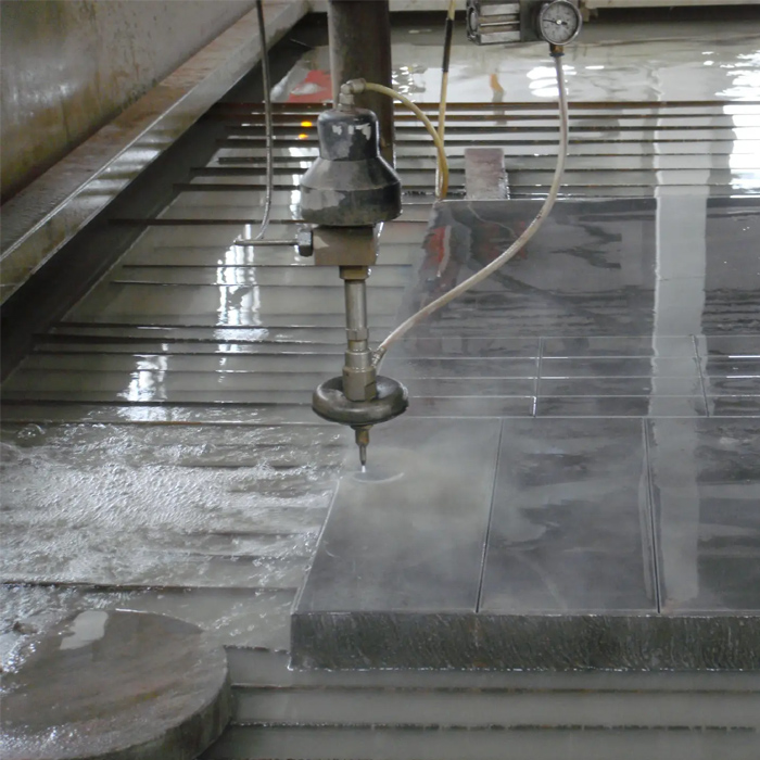 要打破錐度難題,首先要弄清其產(chǎn)生根源。傳統(tǒng)切割設(shè)備多為三軸結(jié)構(gòu),切割過程中射流會因距離變化、壓力衰減出現(xiàn)自然擴散,導(dǎo)致切口呈現(xiàn)“上寬下窄”的斜度,尤其在厚板加工中,錐度問題更為突出。而五軸水刀切割憑借獨特的結(jié)構(gòu)設(shè)計與智能控制技術(shù),從根源上杜絕了錐度的產(chǎn)生。五軸水刀切割搭載萬向擺動切割頭,可實現(xiàn)X、Y、Z三軸移動與A、C兩軸旋轉(zhuǎn)的五軸聯(lián)動,能夠?qū)崟r追蹤射流軌跡,根據(jù)板材厚度、切割速度自動調(diào)整切割角度,讓射流始終垂直于切割面,從源頭規(guī)避錐度問題。